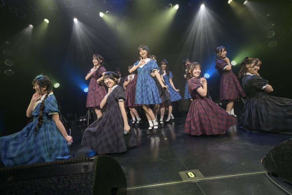 ここで改めてメンバーから挨拶。橘が12人全員での初めての演技を新鮮で楽しかったと振り返ると、永尾も5年目はさらに様々な挑戦をしていきたいと約束。また、お披露目から1年が経った新メンバー4人を代表して、西原悠桜が挨拶を。とても濃かったというこの1年を振り返りつつ、ファンやスタッフへの感謝の気持ち、ここまで引っ張ってきた先輩メンバーへのリスペクトの思いを語ったところがとても印象的だった。そんな西原の挨拶を受けながら、永尾も「12人でアイドルである誇りを持って、夢に向かってこれからも走り続けます。5年目の可憐なアイボリーを見守っていてください」と語り、「アイドルでよかった。」へ。12人が横一列に並び、1人ずつ一歩前に出て丁寧に歌い繋いでいき、アイドルとしての思いを宣誓しているようなパフォーマンスを披露すると、「不屈のアイドル」と「拝啓ライバル」へと続く。ライブで続けて披露されることも多い可憐なアイボリーのアイドルとしてのエモーショナルな部分が全面に表れた2曲だ。この日のパフォーマンスでも「不屈のアイドル」のサビで2つの旋律がクロスしていくところ、「拝啓ライバル」でライバルに立ち向かう姿を歌とダンスで表現、体現したところが特に心に響いた。可憐なアイボリーのアイドルとしての信念やプライドが感じられるブロックであった。