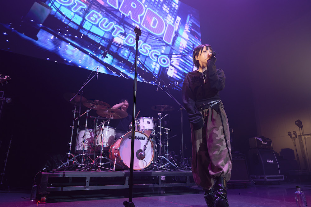 まず1曲目の「Player 1」からバンドが叩き出すエナジーがすさまじい。ラウドロックに通じるパワーは圧巻だ。曲によってビジュアルが変化するキム・イェジはこの日、黒髪ショートヘアというキュートなスタイルでパンチの効いた歌声を披露。その後も「Not But Disco」や「No Need」など、ライブ人気の高い曲を連発。ラストの「Skybound」を前に、ファン・リンは流暢な日本語で「この曲は皆さんの助けが必要です!」と声援と拳のレスポンスを要求。短い時間の中、KARDIらしさを出し切った。