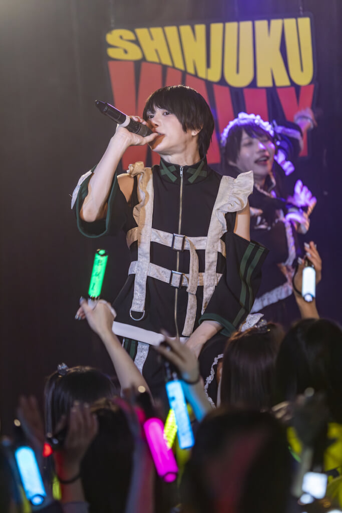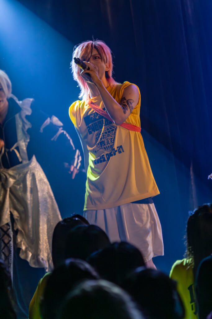 そんなアットホームな空気とは対象的に、「醜形矯正シンドローム」から曲を再開すれば、たちまちキレのあるダンスを披露。満員の会場でペンライトがリズムを刻んでいく。多彩な曲が連なるなか、その後のMCでは双極スペクトラムの曲の作詞を手掛ける楚歌をステージに招き、再び軽快なトークが繰り広げられた。