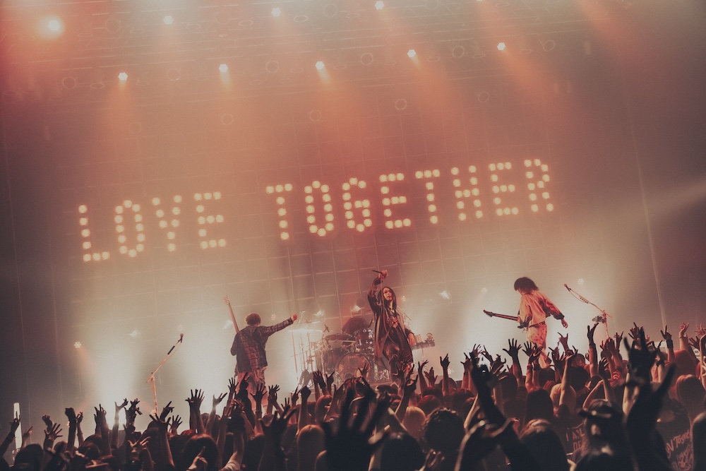必然の邂逅は、このたびMUCCが主催する<Love Together EXTRA>の場にて果たされることになった。同じ釜の飯を食った仲ならぬ、同じ釜の“餅”を食った仲だというMUCCとSadie。愛の重なりあう場所で響いた、それぞれの特色にあふれた音とパフォーマンスの数々は、今宵Spotify O-EASTに集ったオーディエンスを強く惹きつけていくことになったのである。