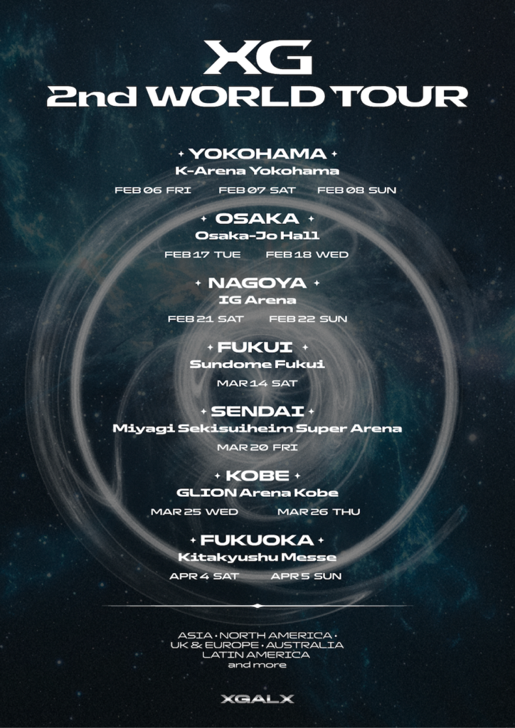 2ndワールドツアーは、2026年2月の日本公演を皮切りに、アジア、北米、UK&ヨーロッパ、オーストラリア、中南米での開催を予定。なお、XGオフィシャルFC「ALPHAZ」では、2025年11月1日より日本公演チケット最速先行予約の実施も決定している。