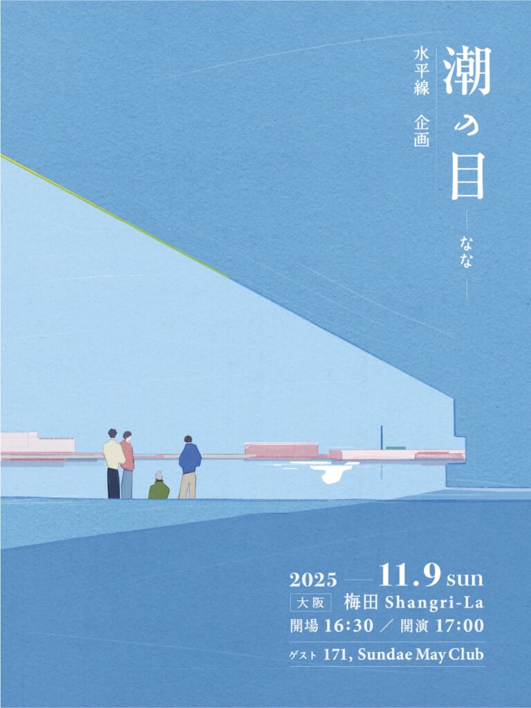 なお、11月9日には7回目となる自主企画<潮の目>を大阪・梅田Shangri-Laで開催する。今回はバンドとして過去最大規模で行われ、共演に同じく関西を拠点に活動し勢いを増している171と、東京・恵比寿LIQUIDROOMでのワンマンライブを成功させたSundae May Clubを迎える。チケットは現在発売中だ。