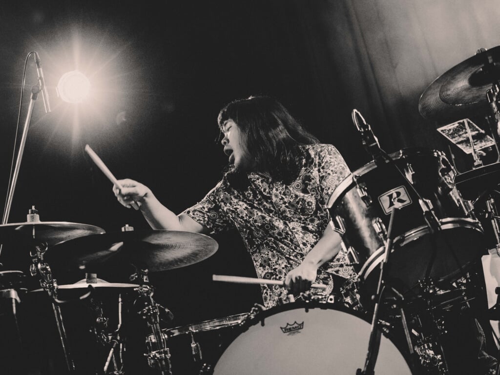 開演時間の19時になるとBGMのボリュームが上がり、電子音楽のパイオニアと呼ばれるデリア・ダービーシャーの「Moogies Bloogies」が聴こえてくる。その後、これもUKの電子音楽家であるLuke Vibertの「Dirty Fucker」が続く。この時点でHedigan’sは「ロックバンド」にとどまらず、その時々で5人が愛聴するさまざまな音楽性を取り入れ、変貌し続ける集合体であるという表明を感じさせた。実際、Hedigan’sのライブバンドとしての表現は、ちょうど2年前の2023年10月にお披露目ライブを行ってから今に至るまで、毎回変化し続けている。開幕の瞬間から、2nd EP『doyes』をリリースし2度目のワンマンツアーを回ってきたHedigan’sは今、どんな形態になっているのだろうかと期待が膨らんだ。