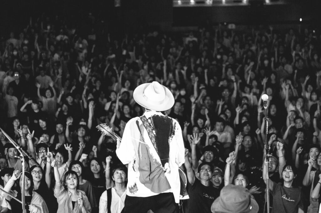 「ようこそ、我が街・川越へ」と大木はここで改めて挨拶し、1階席から3階席までの観客の顔が見えるように会場内を照らしてもらいながら、「自分が生まれ育った大好きな街で、こんなに多くの人に来てもらえるのは嬉しい」と顔をほころばせる。そして「ひとりひとりの人生に寄り添うライブにしたい。最高のライブにしましょう」と、続く「白と黒」からはさらにディープな世界を3人の音で編み上げていった。