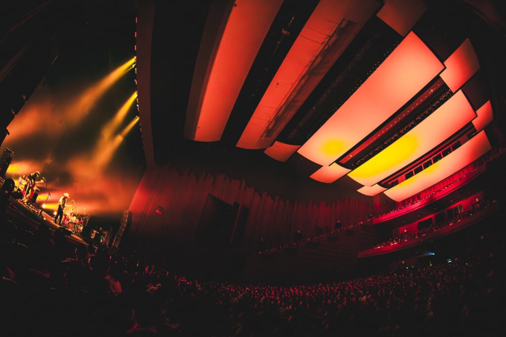 日本武道館を前にしたこのセミファイナル公演の地・川越は大木伸夫(Vo/G)の出身地でもある。それもあってか、3階席まで埋まったホール内の雰囲気は和やかでフレンドリーなムード。曲の合間でメンバーへと呼びかける観客の声もにぎやかで、<This is ACIDMAN>をここで体感できる喜びや祝祭感が会場を明るくしている。