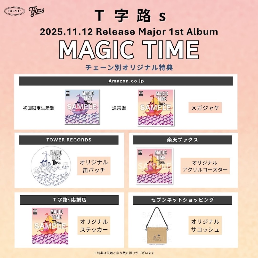 T字路sが、新しいアーティスト写真を公開した。合わせて、11月12日にリリースするメジャー1stアルバム『MAGIC TIME』の収録内容を解禁した。