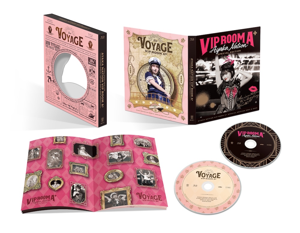 また、『AYAKA NATION VIP ROOM A⁺ Special Edition 2024 & 2025』LIVE Blu-rayの展開図も公開された。両A面となるパッケージビジュアルやブックレットの一部、レーベルデザインを観ることができる。ブックレットには両年のライブ写真が満載とのことだ。