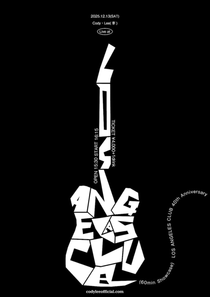 Cody・Lee(李)が、東高円寺ロサンゼルスクラブの創業40周年を祝し、12月13日に<Cody・Lee(李) Live at LOS ANGELES CLUB (60min showcase) ~LOS ANGELES CLUB 40th Anniversary~>の開催を発表した。