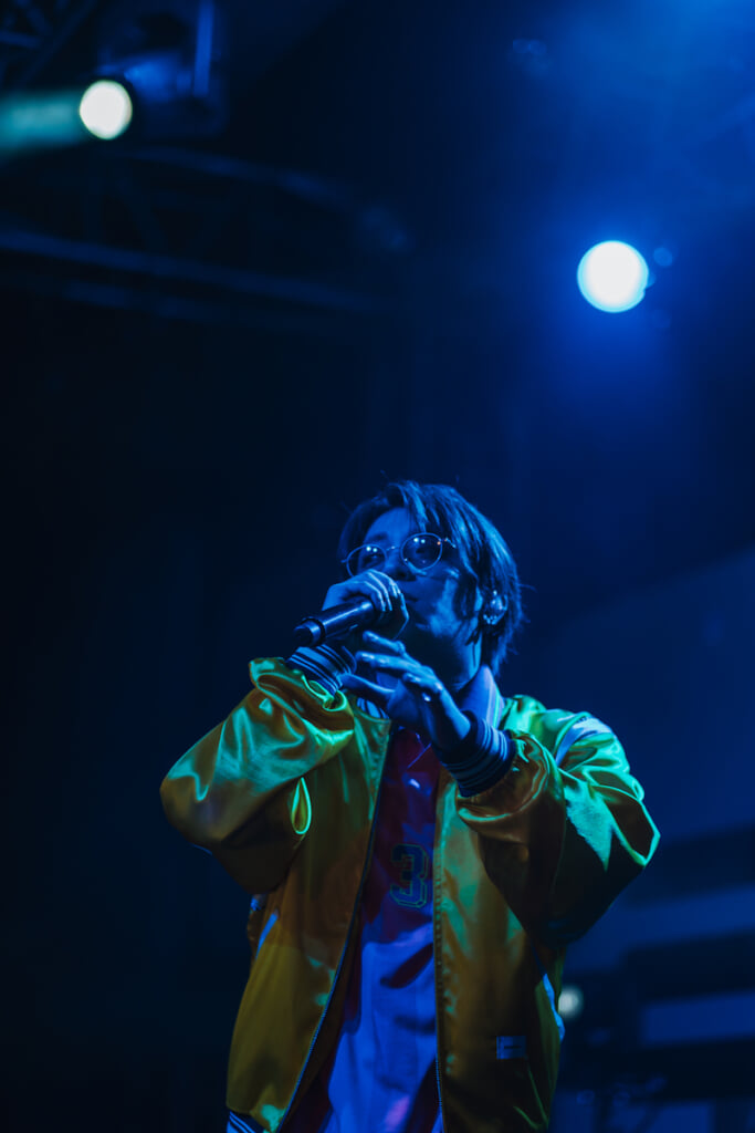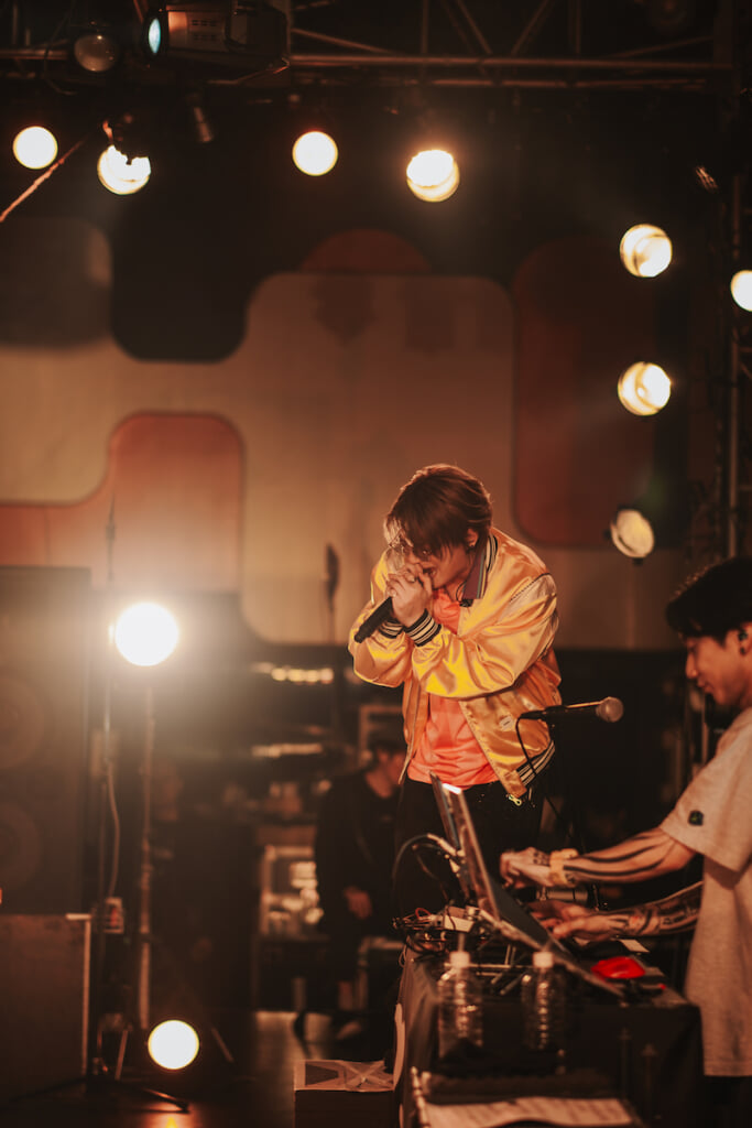 続いてリミックスパート2つ目の“Sunset Remix”では、「Die young」「虫の音」「インベーダーインバイト」が織り交ぜられ、Bimiいわくリトルマーメイド感があるというサウンドに「男はセバスチャン、女はアリエル」と語るユーモアも交えつつ幻想的な空気を作り出す。流れのままに「Good-by」「Orange」を立て続けにパフォーマンス。