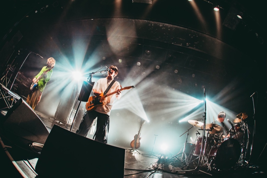 そのムードを引き継ぐように、ミドルナンバー「昔話」、ロックバラード「嵐の夜に」とメランコリックな楽曲を立て続けに披露する。こうへいの歌声にはセンチメンタルで寂寥感が溢れると同時に、それ以上のあたたかな力強さが漲っていた。心の中に巻き起こった感情をすべてぶつけながらギターをかき鳴らして歌う姿に、観客も熱い視線を送る。その後はまさみの軽やかなドラムが映える「ふたりぐらし」で空気を変えて、ベースリフに乗せてこうへいが「僕はまだ結局あの子のことが好きかもしれません」と告げ「結局」へ。リズムがユーモラスな空気を作り出し、アウトロのベースソロでは観客も大きな歓声を上げた。
