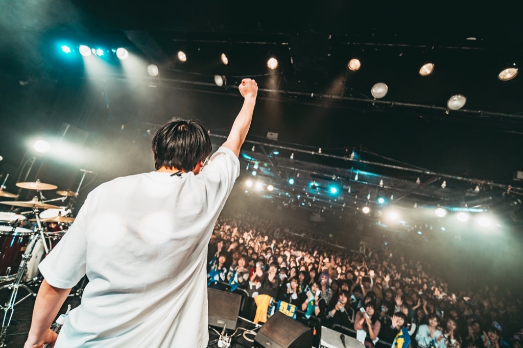 こうへいが「皆さんは犬とか猫とか好きですか?」と切り出し、SNS総再生数20億回を突破したヒットソング「犬とバカ猫」を早速披露する。落ちサビで観客にシンガロングを促すと観客もそれにまっすぐ応え、ヒットが追い風となりリスナーから深く愛される楽曲に育っていることをうかがわせた。こうへいが「LIQUIDROOM最高です、ありがとうございます! ここまで観に来てくれたということは、僕たち“両思い”ってことでいいですか?」と告げると、間髪入れずに「両思い」を披露。観客も即座にクラップを鳴らし、こうへいのギターソロでは大きな歓声を上げるなど、全身で音楽を楽しむ。メンバーたちもそんな観客に感謝を伝えるように、ポジティブで晴れやかな歌と演奏を届けた。