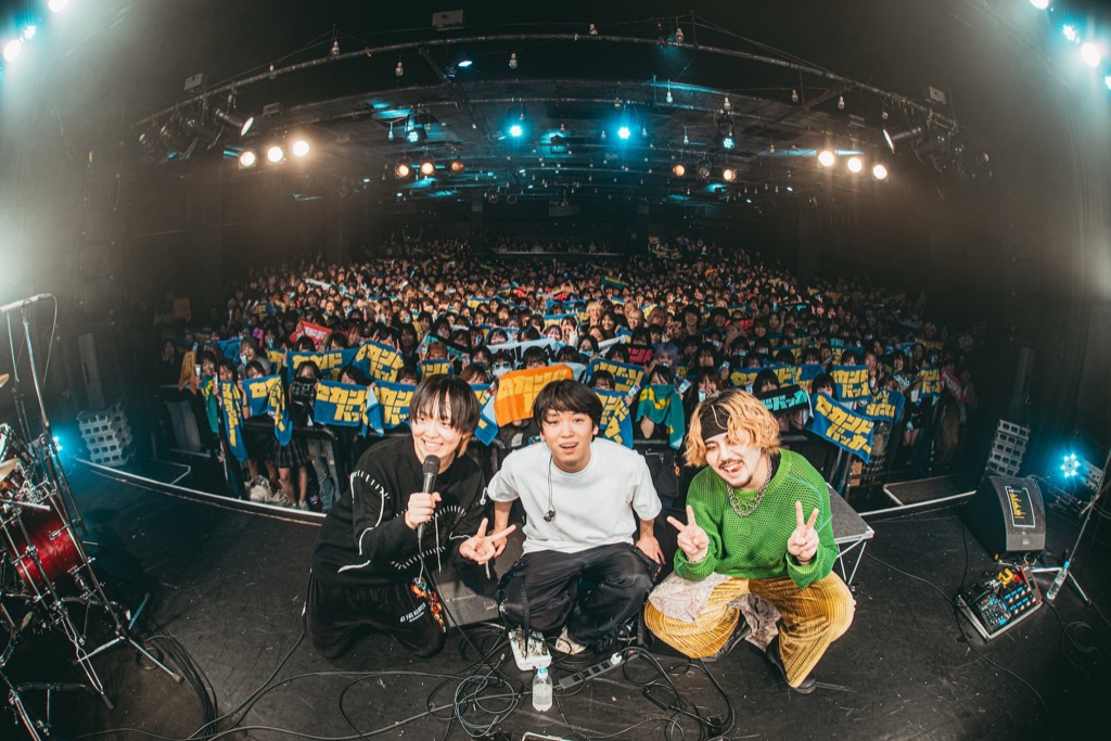 そんな自分へのもどかしさからか「自分はこんなにも何もできなくて、借金あって、地位も名誉もなくて、俺に何があるの!?って思うの!」と言うこうへいに、まさみがすかさず柔らかい表情で「そんなこうへいくんに唯一残っているものはなんですか?」とスマートに助け船を出した。するとこうへいの表情が急に明るくなり「まさみくんがメンバーで良かった! 俺には言葉と音楽があります! しっかりやっていきます、よろしくお願いします!」と叫んで「バンドマンとして」を歌い始めた。パンクナンバーを体当たりで届けるものの「全然足りない! できないことばっかだし、わからないことばっかりだけど俺はもっとあなたのことが知りたいし、もっとあなたの声が聞きたい! 不器用だけど一生懸命やりたい!」とリミッターを外し、再度同曲を演奏した。まさみと優月.もこうへいの感情の波に乗るように演奏に没頭し、盛大な花火を打ち上げるような高揚感のなかツアーの幕は閉じた。