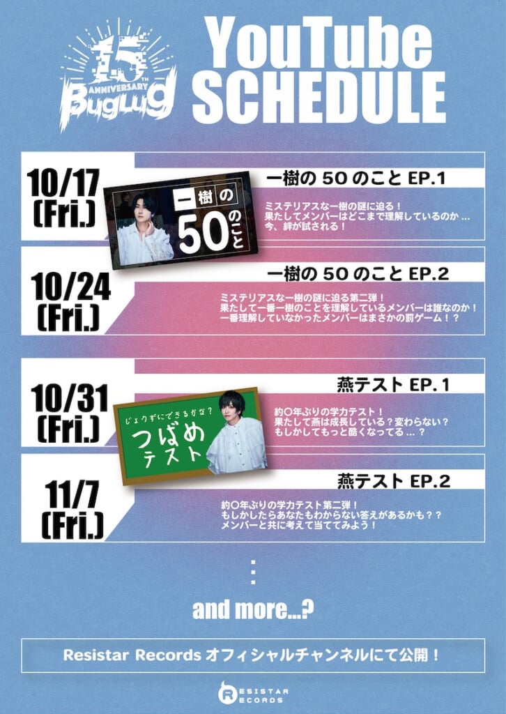 BugLugが所属するResistar Records公式YouTubeチャンネル「れじちゃん」にて、バンドの新企画『つばめテスト』が公開された。