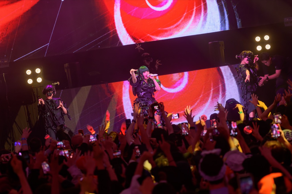 振付は「PONPONPON」「にんじゃりばんばん」「ファッションモンスター」など、彼女の代表作を数多く手がけてきたMaikoが担当。シャープかつユーモラスな動きで魅せる“現実逃避”のパフォーマンスは、クラブフロアのエネルギーと完全に融合し、観客のボルテージを一気に引き上げた。