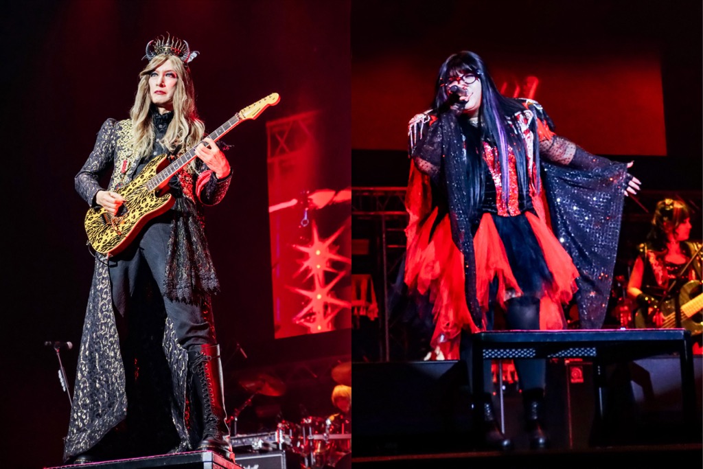歌唱1曲目の「LOVE LETTER FROM A DEAD END」からアリーナの熱が一気に爆発する。切り裂くようなギターの音が胸を撃ち、デーモン閣下の声がまるで竜巻のごとく会場を支配する。観客は両腕を掲げ、全身でその音を受け止める。長崎の夜が瞬く間に、近未来的な重厚さと疾走感をまとう世界に包まれてゆく。 続く「Masquerade」ではインダストリアルな音色と人の心をノックする言葉が幻想的な照明とともに妖艶な空気をかきたて、続いて放たれた「老害ロック」では、ロックの力を見せつけるかのように、熟練ならではの激しくも痛快な演奏が炸裂。閣下のユーモアを交えた歌によるインプロヴィゼーションも冴えわたり、長崎の信奉者たちを笑いと喝采で鷲づかみにした。
