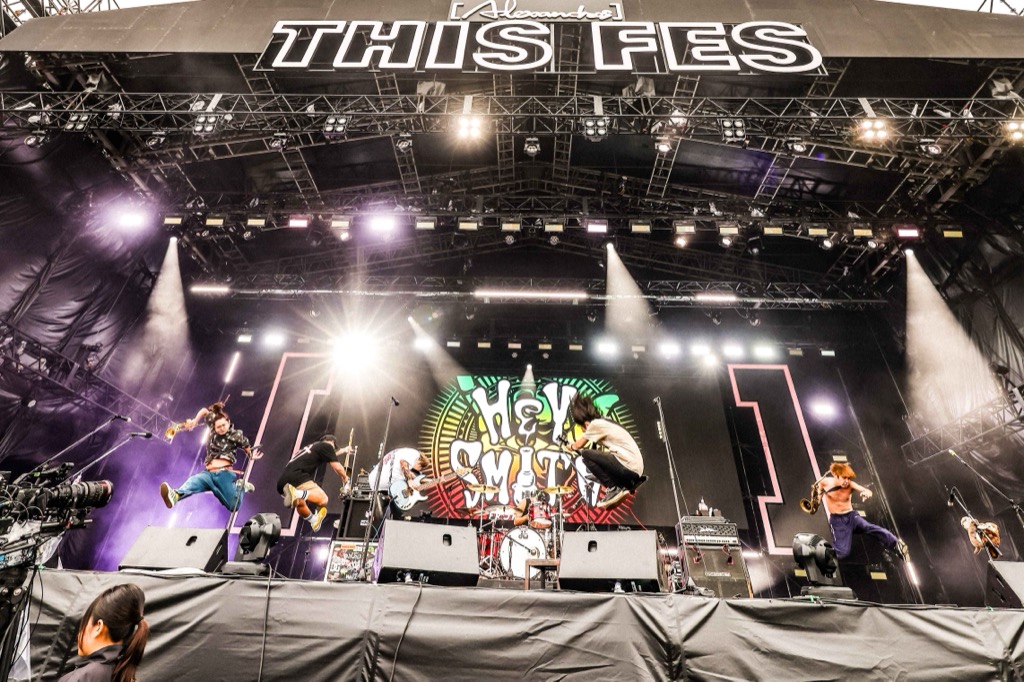 猪狩秀平(G,Vo)の「やっほー! <THIS FES>初登場、俺たちがHEY-SMITHです!」という自己紹介の後、1曲目の「Say My Name」へ。YUJI(B,Vo)の切実さを帯びた鮮烈な歌に、ファットなホーンの調べが重なり、その熱に呼応するように観客が怒涛のコールを繰り返していく。続く「Endless Sorrow」では、ホーンのリフに合わせてヘドバン、「2nd Youth」では、スカのリズムに合わせてステップを踏む。その後も、メンバーと観客による情熱的なコミュニケーションがまだまだ続き、展開を重ねるごとに観客の声が大きくなっていく。