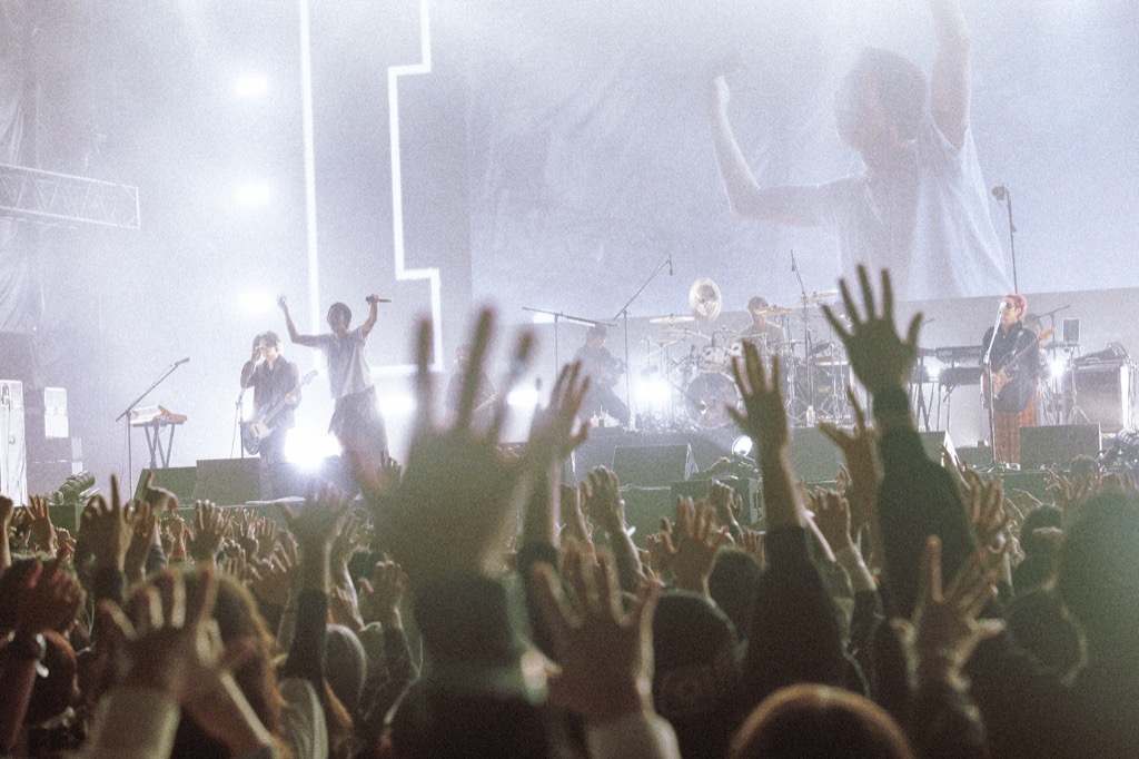 「Droshky!」では、HEY-SMITHの猪狩秀平、満、イイカワケン、サポートのUMEがゲストとして登場。狂騒的なパーティーチューンをホーンの音色が熱烈に彩り、間奏では、猪狩と白井のユニゾンプレイが炸裂。その後のMCパートで、川上は、かつて出演した「京都大作戦」から、地元を愛すること、大切にすることを学んだと振り返り、今後も<THIS FES>を続けていく意志を伝えた。