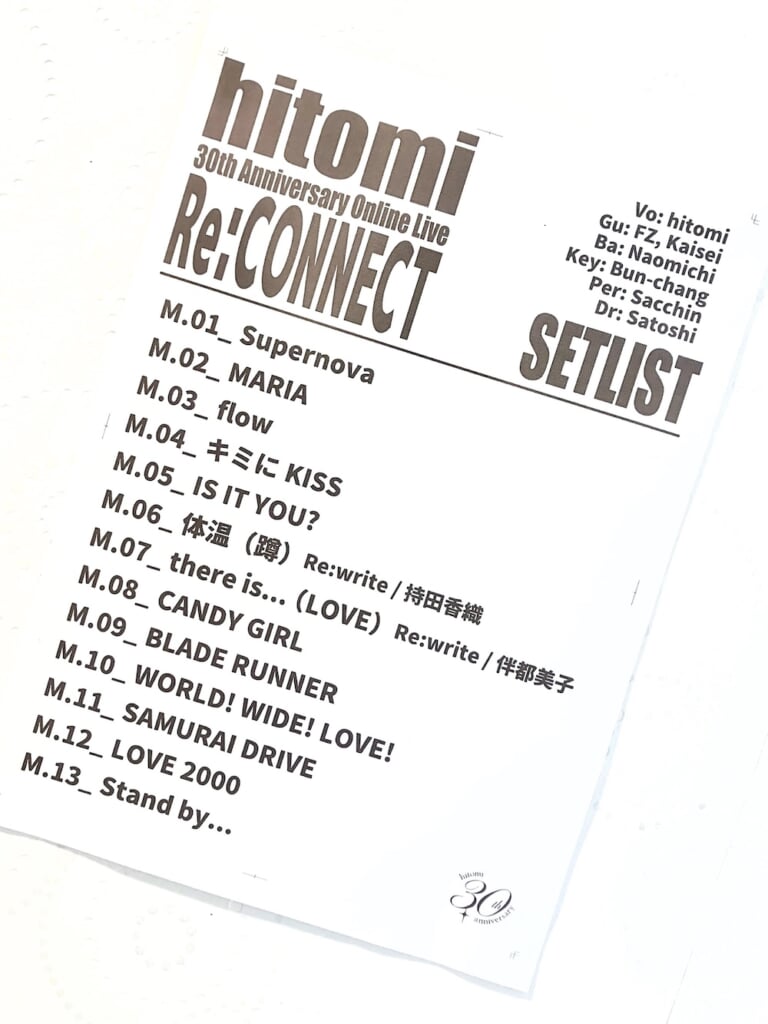 ・Live CD:hitomi 30th Anniversary Online Live「Re:CONNECT」のライブアルバム+α