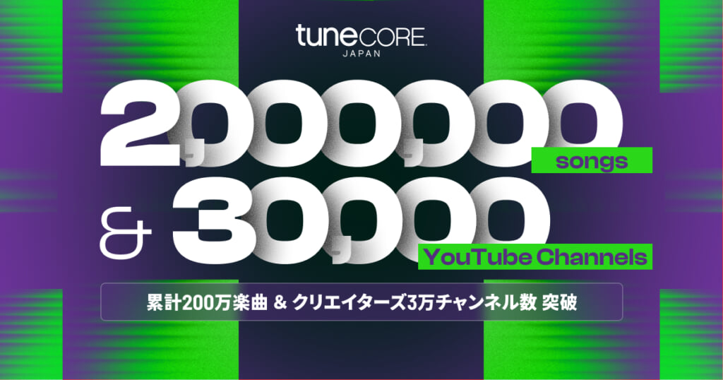 TuneCore Japanを通じて音楽ストリーミングサービスを含む音楽配信ストアに配信リリースされた楽曲数が、サービス開始から累計で200万曲を突破した。あわせて、2023年10月からスタートとなった動画クリエイター向けサービス「TuneCore クリエイターズ」の登録YouTubeチャンネル数も3万チャンネルに到達したという。