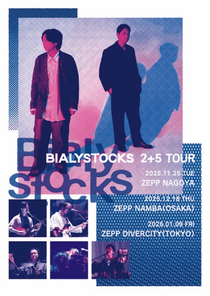 また、Bialystocksは11月から年明けにかけて、東名阪3会場を巡る<Bialystocks 2+5 Tour>を開催する。現在開催中の<Bialystocks 二人編成ツアー 2025>は全19公演がソールドアウト。それを受けて行われる本ツアーでは、7人編成によるバンドセットでのライブを予定しており、Zepp Nagoya・Zepp Namba(OSAKA)・Zepp DiverCity(TOKYO)の3会場で実施される。チケットは一般発売中だ。