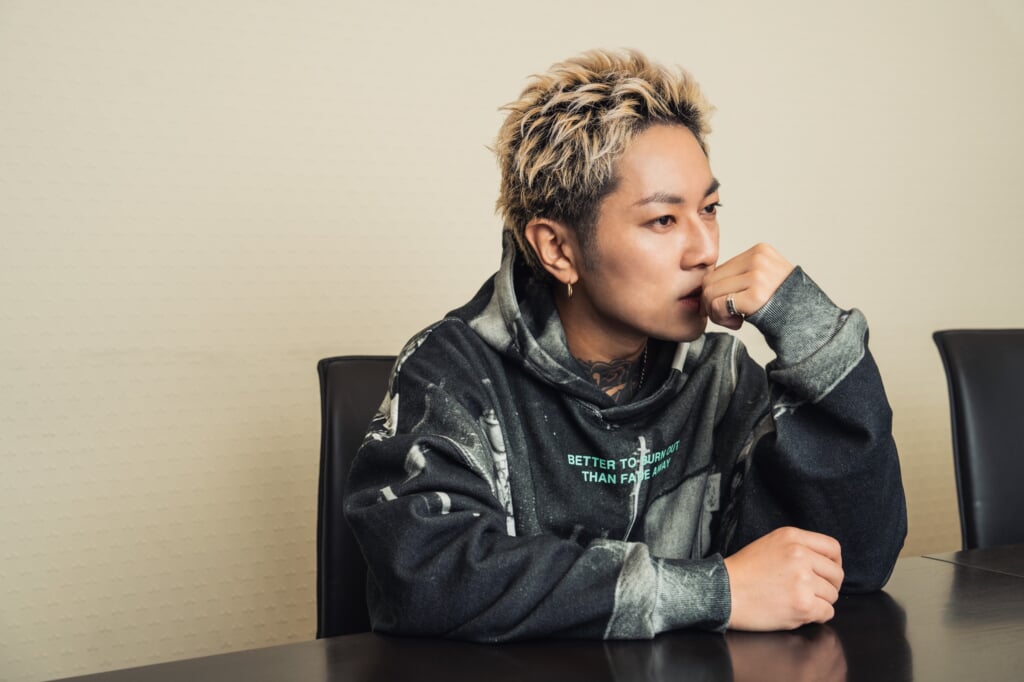 ASH:「海外にはギターレスのロックバンドも存在している。ASH DA HEROにはベースがいて、ドラムがいて、DJがいて、ボーカルがいる。であれば、ロックができないという言い訳にはならない。ロックができる気がする。いや、できる。やるんだ。それを作っていこう」って話をメンバーやスタッフともしたんです。「未知の領域だけど、やってみよう」と。痛みも悲しみも不安もめちゃくちゃあったけど、目の前に待ってくれているファンのみんながいるから、俺たちは進むんだっていう決意。そして「みんなに希望を見せることが、ロックバンドとして一番カッコいいことだ」って話をして、とにかく進もうと。