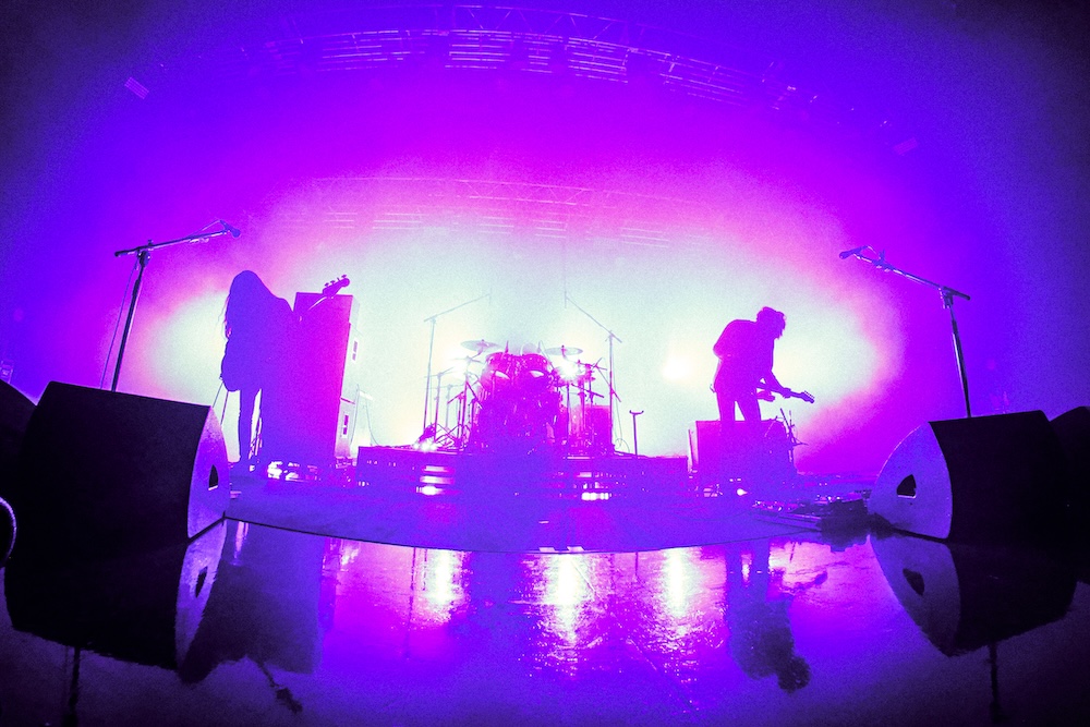 ライブの定番曲やインディーズ時代のレア曲、縁の深いアニメ『PSYCHO-PASS サイコパス』の関連曲など、新旧を問わない濃密な16曲を演奏。シアトリカルな赤い照明の中で披露された、今回のツアーのテーマ曲とも言うべき「Sα.SO.RI.」は、TK(Vo, G)のテクニカルなギター、345(B)の重心の低いベース、ピエール中野(Dr)のパワフルなドラムが絡み合い、クライマックスのような盛り上がりを見せる。TKの「寒くなってきましたが、ここはホットになってますか?」という呼びかけにフロアが熱狂的な反応を示したりと、終始テンション高めに進行していき、ステージから投げつけられる音の塊はまさに失神級の威力だ。そんな中、重厚なミドルチューンの「sick mind B rain」や、345の浮遊感のあるボーカルとTKのディレイを駆使したギターが幻想的な雰囲気を作り出す「Black Sparkle」といった『Lost God of SASARI』の収録曲がいいアクセントにもなっていた。