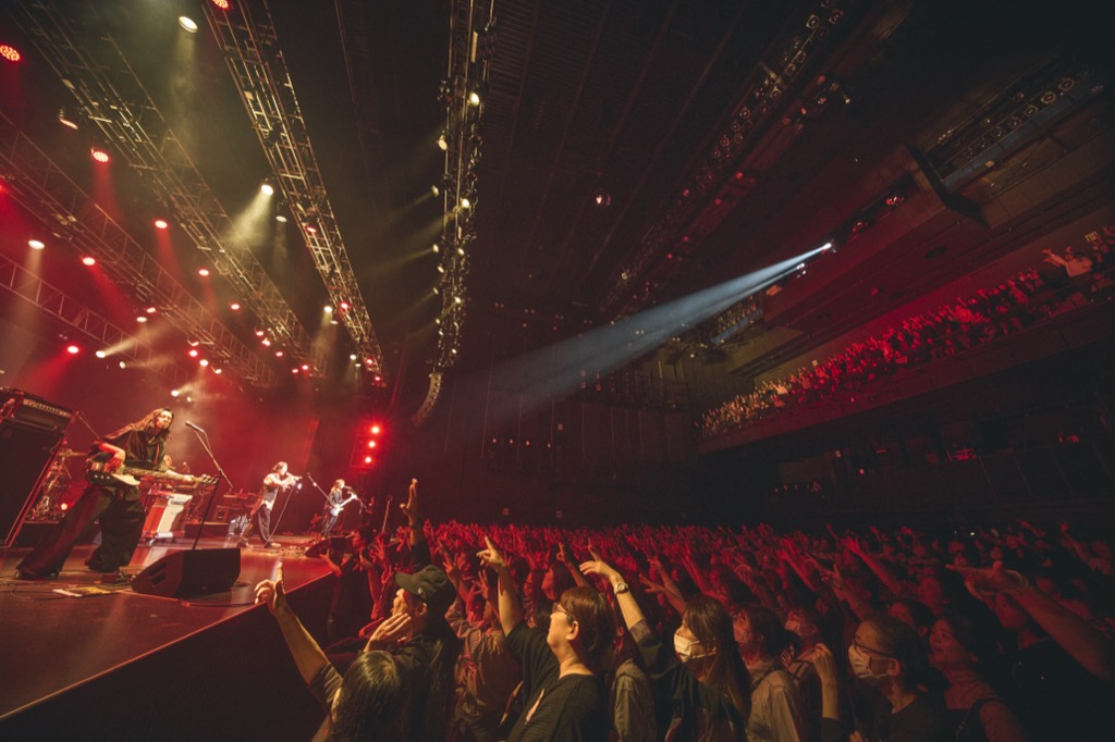 18時の開場と共に続々と詰めかけるファンたち。スタンディングエリアは瞬く間に埋め尽くされ、開演を待つ会場には既に高揚感が漂っていた。19時、場内が暗転すると、本ツアーのために新しく制作されたSEが鳴り響く。重厚なサウンドが会場を支配する中、メンバーが次々とステージに登場すると、観客からは割れんばかりの拍手と歓声が巻き起こった。