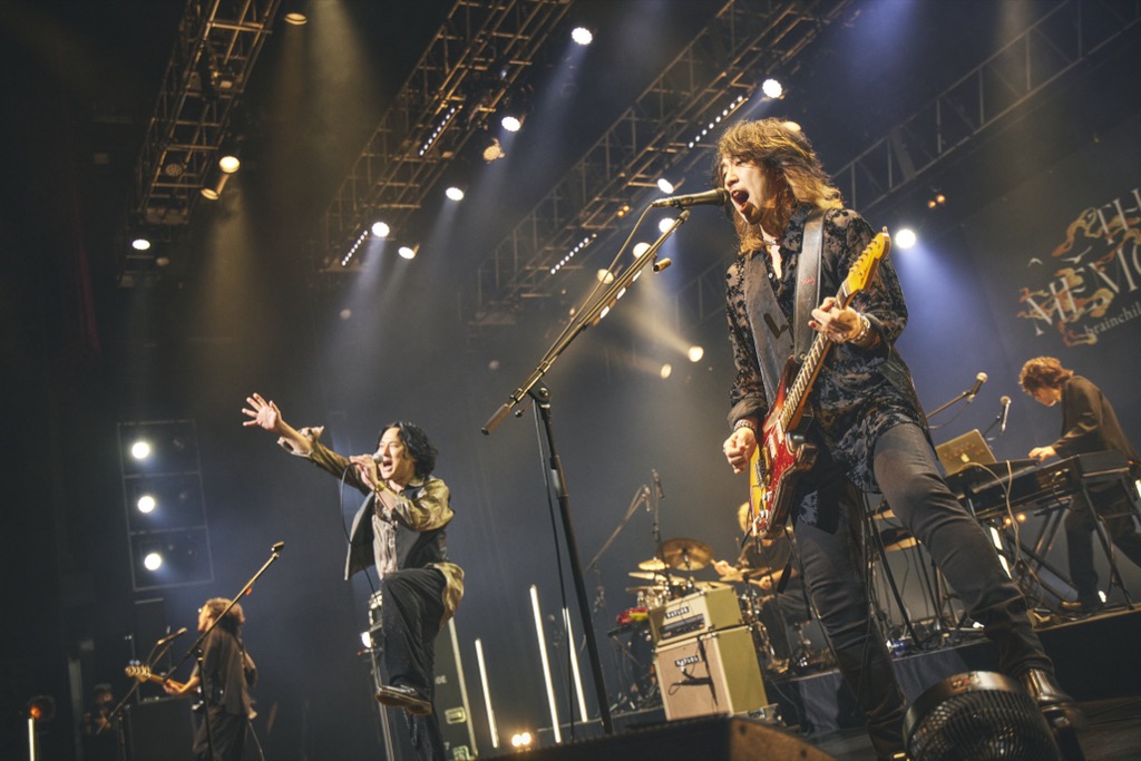 その熱気を一気に加速させるように、オープニングナンバー「Phase2」がスタート。菊地英昭(G)の鋭利なギターリフ、渡會将士(Vo)の力強いボーカル、神田雄一朗(Ba)と岩中英明(Dr)が刻む重厚なリズム隊、そしてMAL(Key)が彩る華やかな音色——第7期。のメンバーが織りなすサウンドは、初日の水戸公演から磨き抜かれ、まさに完成形と呼ぶに相応しい輝きを放っていた。