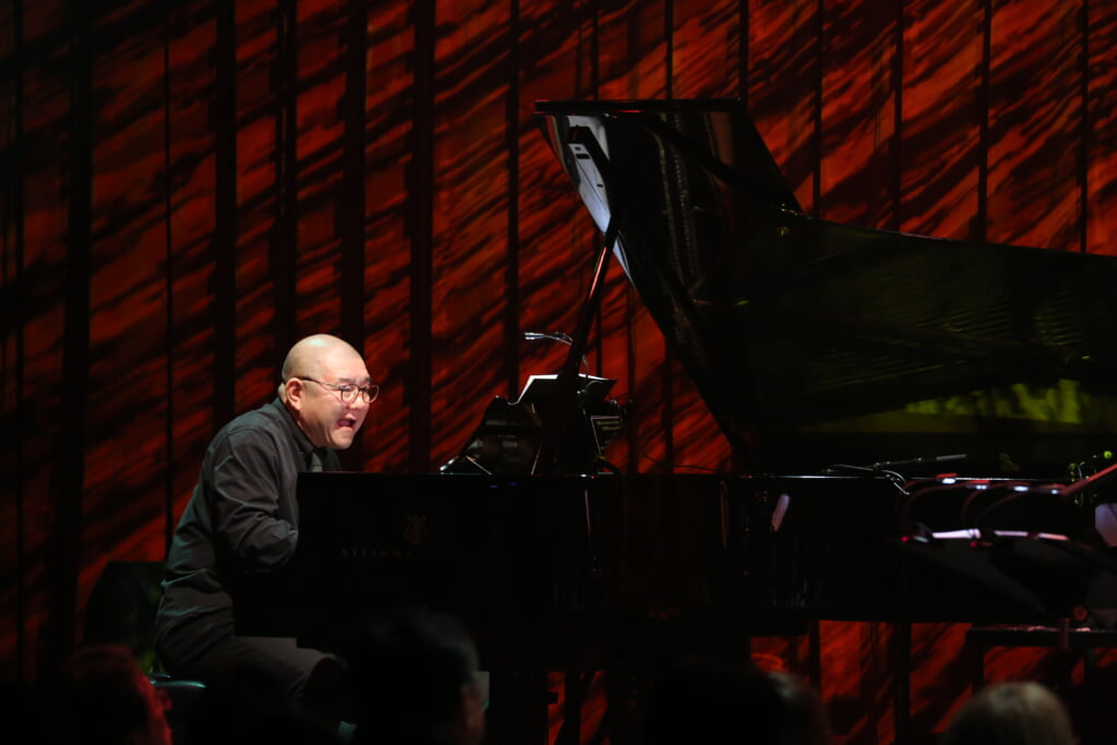 「私の真ん中」「太陽」と、あたたかな歌声と3人のハーモニーを響かせた後に披露されたのは「夢を見ていた金魚」。2000年にリリースされた4thシングルのタイトル曲であり、アルバム『そばのかす』に収録されているゴリゴリのバンドサウンドが轟くナンバーを、ピアノとアコースティック・ギターのみながらアダルトな雰囲気を纏ったロック・ヴァージョンへと大胆にアレンジ。エッジの効いたギターがリズムを刻み、矢野の迫力ある歌声が覆うなかをピアノの音粒が泳ぎ回る金魚のようにうねる圧巻のパフォーマンス!これまで聴いた中でも最高にぶっ飛んだアレンジと仕上がりに、たいそう痺れました。