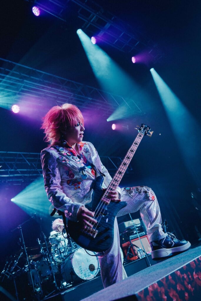 ライヴは、CHISA(Vo)が新たに作曲した登場SEから幕を開けた。テーマは“旅先での非日常”。カジノを思わせる軽快なリズムが響く中、軽やかに登場したちょび(B)と将吾(G)が笑顔で観客を迎え、続いてsatoshi(Dr)が静かに登場。クールな登場はいつも通りの光景だが、ファンからの歓声は一段と大きかった。演奏陣を包む声援の中、CHISAが姿を現すと、Zeppの空気は一気に爆発する。