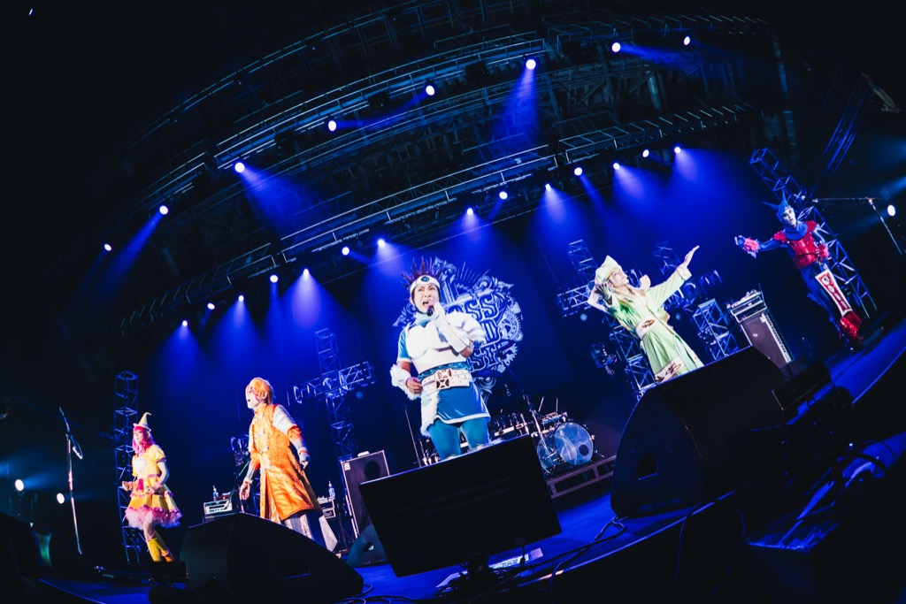 「それでは、Psycho le Cémuの世界へいざなおう!」というアナウンスに続き、魔王を討つための勇者として5人はステージに登場。「あのSHAZNA王国を滅ぼした魔王を倒し、イザム姫を助けるときがやってきたのだ!」と賢者・YURAサマが未来の書を携えれば、「キリストの涙、La’cryma Christiを飲み干して、最強の能力者になった私に敵う者など、この世にいないのだ!」と水撃のモンスター・seekが般若の表情で客席を威圧する。また「ここから先は生死を賭けたD’ESPAIRSRAYの聖戦が始まろうとしている。我が拳が烈火のごとく魔王を貫くだろう!」とドラゴンをまとった武闘家・Lidaは胸を張り、天空の魔法使いAYAは「魔王の攻撃を受けたとしても、アタイが魔法で呼び寄せた妖精軍・FAIRY FOREで回復できるから、安心しろナリ!」とピースを決めてみせた。そして「永遠に枯れることがない大木・Plastic Treeに刺さっていた、このエクスカリバー。真の勇者しか抜くことができないこの剣を、やっと手に入れたんだ」と伝説の勇者・DAISHIは巨大なエクスカリバーを掲げる。さらにYURAサマが持つ書には「我々Psycho le Cémuと同じ志を持つ4人の勇者・Waiveが、2026年1月4日、日本武道館にて行われるLAST GIGで魔王に立ち向かう同士を集めている」との文字も浮かび、共演バンドの存在を散りばめたこの日だけの物語は幕を開けた。