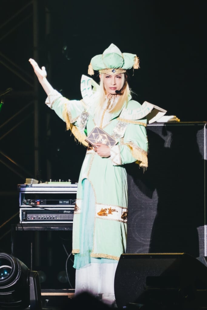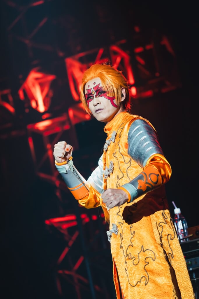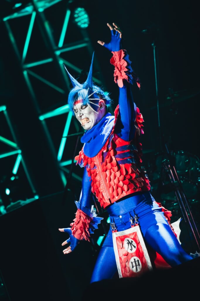 2番手として登場したのはPsycho le Cému。1999年に結成してから四半世紀、常にコンセプチュアルなライブを展開してきた彼らは、荘厳なオープニングSEで幕開けたこの日も<CROSS ROAD Fest>でしか成立し得ない特別すぎる物語を用意してくれた。