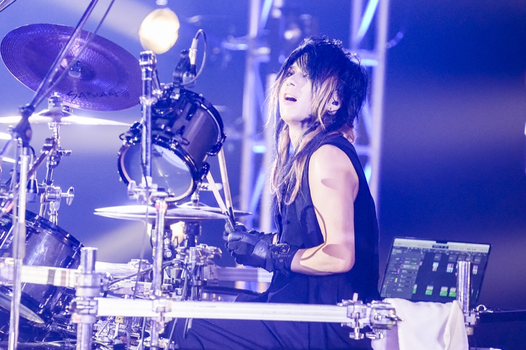 TSUKASAの叩き出すドラムの音と連動するように、烈しい火花があがる中でパフォーマンスされた「REDEEMER」。Karyuがアクティヴに広いステージで所狭しと暴れ回りながらも、押さえるべき点はきっちりと押さえたプレイを展開したキラーチューン「Forbidden」。暗黒要素の強い音像にのせた全英詞を、HIZUMIがスクリーミーに歌いあげてみせた「Infection」。ZEROが頭を振り倒しつつ、ラウドな音で曲の持っている勢いをブーストしていった「Human-clad monster」。聴けた音はどれもこれもあの頃のままのようでいて、あの頃よりもさらに深みが増しているように感じたほどだ。