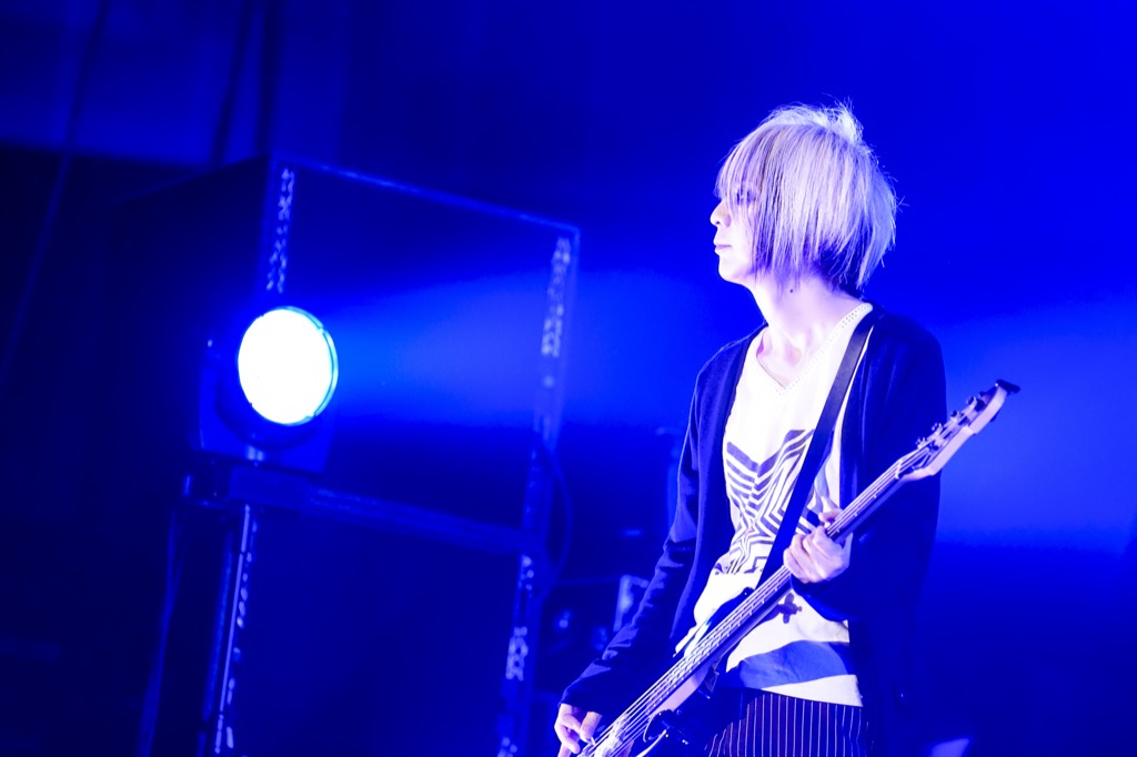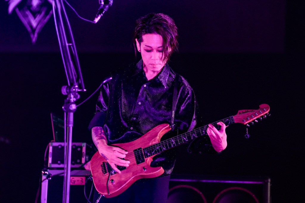 と、ここで有村から普段通りのユルいモードで挨拶が。この日の出演バンドは、実は以前すべて同じ事務所に所属しており、イベントでも頻繁に顔を合わせていた奇跡のラインナップでもある。そこで「今日はいろいろ懐かしい対バンということで、再会を祝しまして。あのとき一番よく歌ってた曲を、次、行こうかなと思います」と前置き、有村が1999年リリースの「Sink」をタイトルコールすると、場内には歓声が。ナカヤマの美しいギターアルペジオに始まり、ゆっくり夜へと沈んでいくような心地よさと、見知らぬ場所へと向かう心細さが共存するようなナンバーは、懐かしくも彼ら特有の不思議な感覚を味わわせ、最後に有村が告げる「バイバイ。」も余韻たっぷり。四半世紀を超えたトリップに、オーディエンスからは大きな拍手が贈られた。
