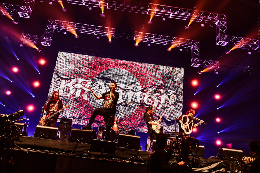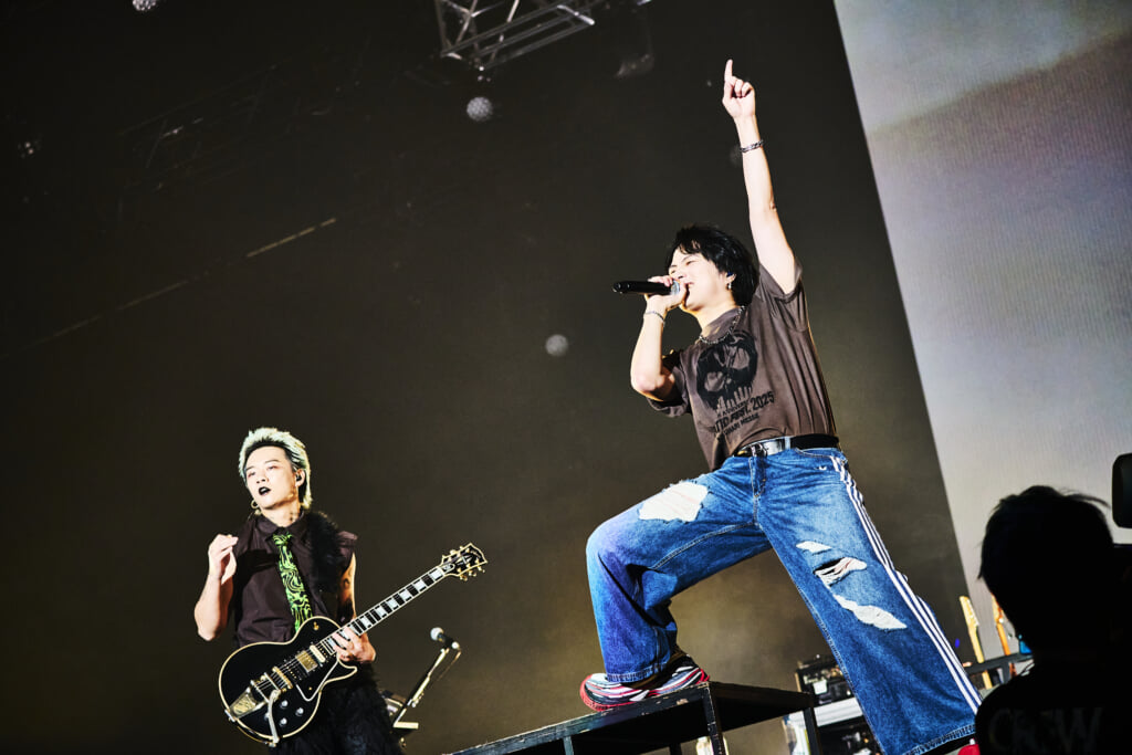ドープなトラックに好戦的なラップを乗せた「メリーゴーランド」、跳ねるビートで踊らせる「蜃気楼」、シティポップテイストを効かせた「東京ミッドナイト」と、最新アルバム『The Crown』の楽曲を連投。ヘヴィなサウンドからエレクトロ、R&Bまで幅広いジャンルを取り込んだ進化形のロックで<LUNATIC FEST.>に新しい風を吹かせていた。