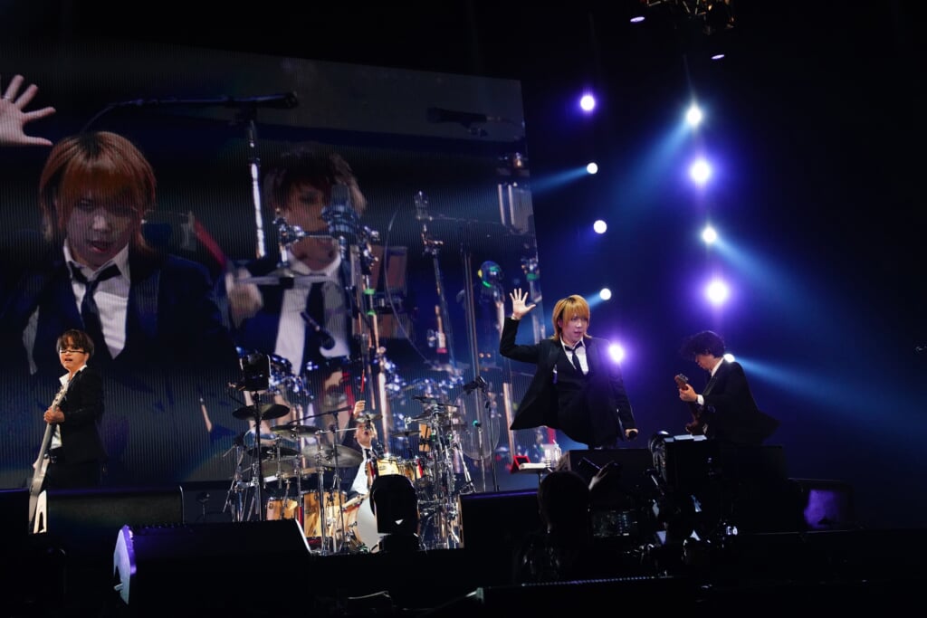 「モノクロのキス」を終えたマオが「もうシングル曲とかやらねえぞ」と不敵に宣言したとおり、セットリストも現在進行形のツアー仕様。会場の空気を一気に変えたシリアスなバラードの「低温」や、攻撃的なサウンドの「0.5秒の恋」、レトロな歌謡曲テイストの「プロポーズ」など、“闇”を纏ったシドの表現力を存分に堪能した。