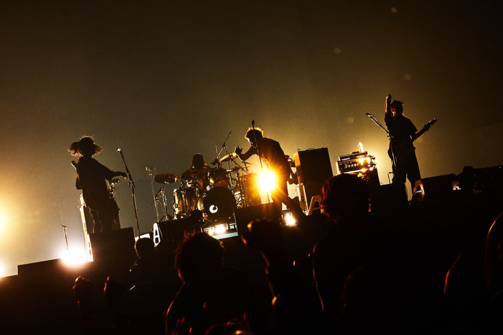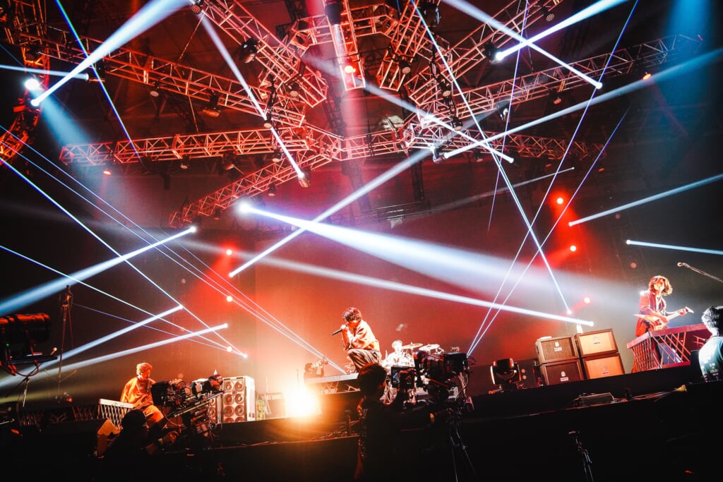 やや緊張した面持ちで登場しつつ、1曲目の「カノープス」からのびやかなメロディと強力なバンドアンサンブルを会場に解き放っていく。竹中雄大のハイトーンが輝く「seeker」や、アコースティックギターで始まるラブソング「愛とか恋とか」など、しっかり自分たちの強みを生かしたセットリストを展開。