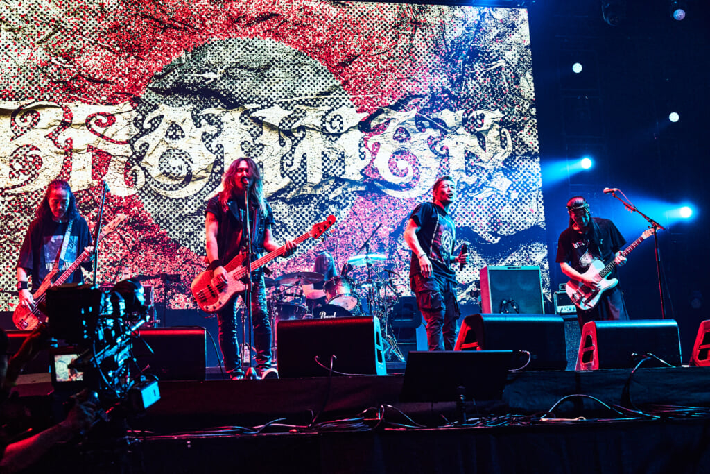 大トリLUNA SEAを残し、STYLE STAGEのラストアクトをBRAHMANが担った。復興支援を通してTOSHI-LOW(Vo)とSUGIZOが出会ったことをきっかけに、BRAHMANが<LUNATIC FEST. 2018>の台風の目として大暴れしたのが7年前。以降も両者は絆を強め、LUNA SEAは、翌々週にここ幕張メッセ国際展示場9-11ホールで開催されるBRAHMAN主催<尽未来祭>にも出演が決定している。双方にとってメモリアルなステージは、早速SUGIZOが加わっての「初期衝動」で幕を開けた。続いて、「一生に一度きりだと思ってたルナフェス、また呼ばれました。御礼は全力! BRAHMAN始めます!」とTOSHI-LOWが宣誓し、「BASIS」「SEE OFF」と鍛え抜かれたライヴチューンを畳みかける。ダイブも続出する前方エリアは、さながらライヴハウス状態だ。
