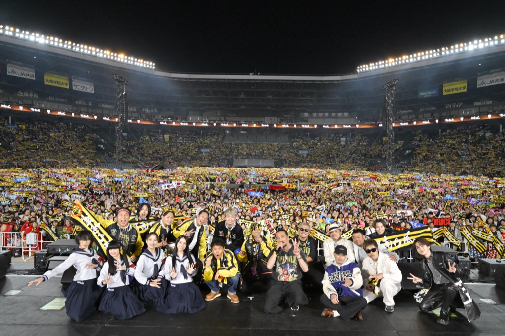 <湘南乃風 熱唱甲子園>は、2013年、2023年に神奈川・横浜スタジアム公演を成功させた湘南乃風にとって関西では初となるスタジアムワンマンライブ。湘南乃風が今年コラボレーションした新しい学校のリーダーズ、THE RAMPAGE from EXILE TRIBEからボーカルのRIKUと吉野北人、浜田雅功らも参加し、生粋の阪神タイガースファンであるメンバーの若旦那が切望していた夢の大舞台に、全国から3万人が集まった。