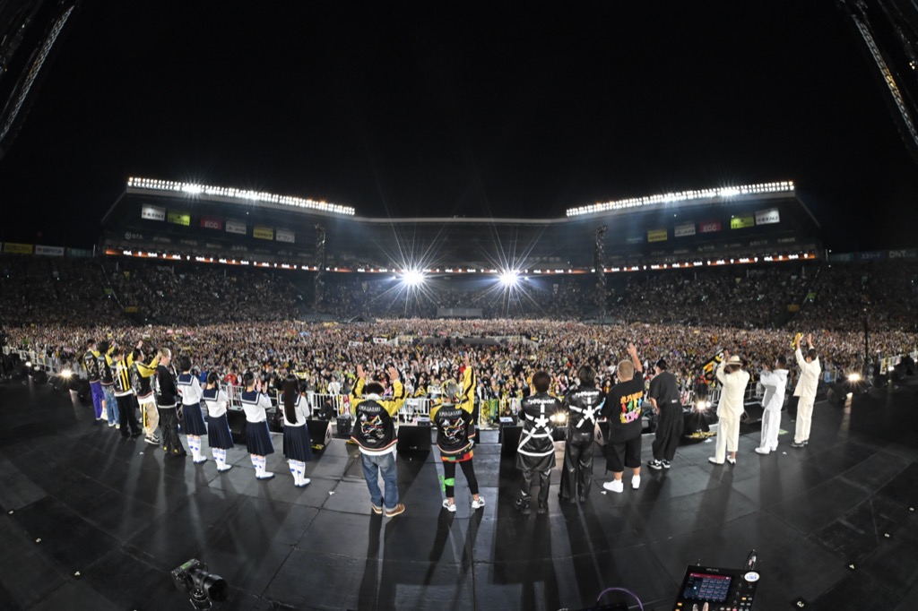 ライブも終盤となった頃、「まだまだやれるかー! 湘南を倒しに来たぞー!」と浜田雅功がステージへ。浜田が現れ、自身MCを務めた音楽フェス<ごぶごぶフェスティバル 2025>のテーマソングとして湘南乃風が書き下ろした「人生爆笑」を、ごぶごぶファミリー共々そろいのスカジャンを着て大合唱。クライマックスはド派手な火柱が上がった灼熱のダンスチューン「バブル」、最強の代表曲「睡蓮花」で畳み掛け、HAN-KUNが「本当に夢みたいな時間でした」と言うのも納得のフィナーレとなった。