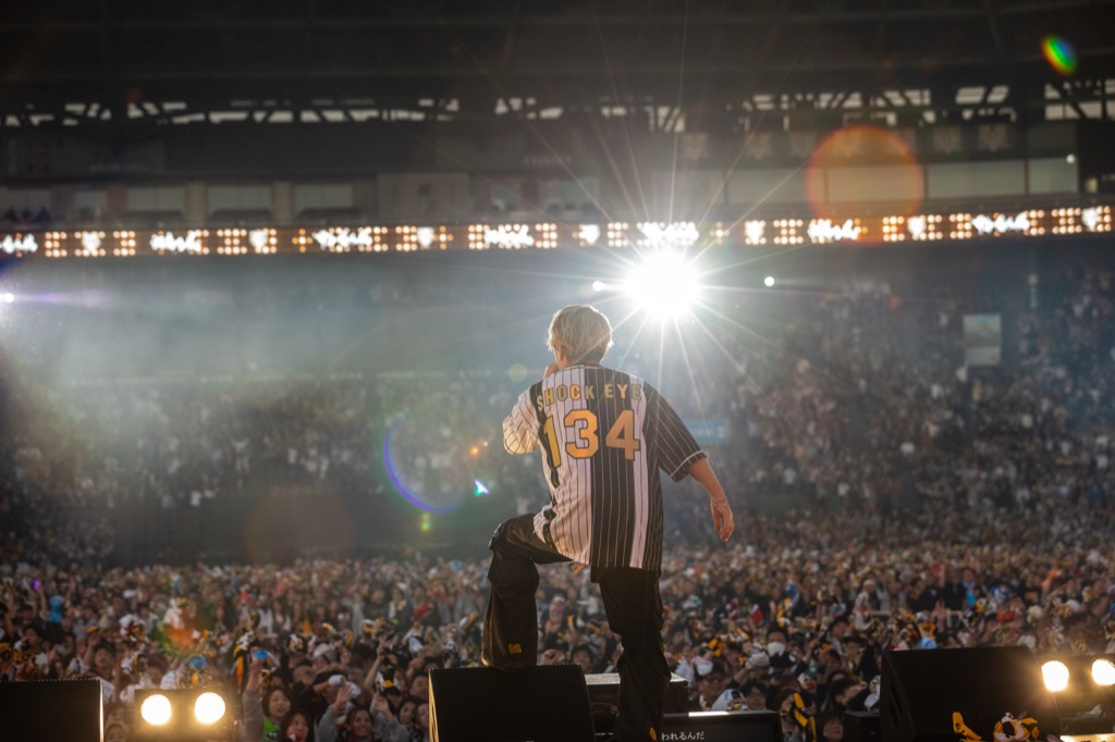 そしてHAN-KUNが、「一つの夢に向かって突っ走ってきた俺らの家族がいたから、このステージに立てたんだと思う」と若旦那に語り掛ける。大の虎党であった若旦那の父親が残した言葉は、「タイガースはお前に任せた。サトテル(=佐藤輝明)は頼んだ(笑)」(若旦那)。「ここに立ってるのを見せたかった。親父、見てるかー! 俺にはこんな素敵な仲間がいるぞー!」と叫ぶ若旦那に、HAN-KUNが「全員で手を上げよう、空に向かって」とささげた「恋時雨」には、甲子園が大きな感動に包まれた。