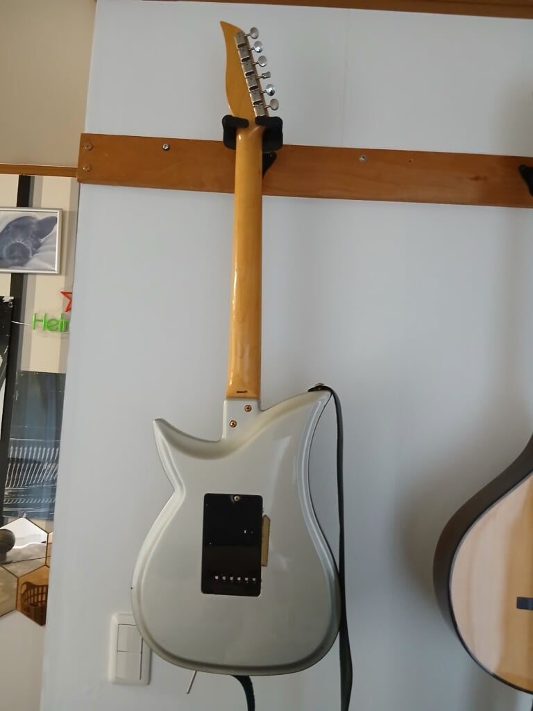 ただ、パーツはほぼない抜け殻状態で、ブリッジ周辺はハッカイ氏がフロイドローズを載せようとして失敗した跡が痛々しく残っていました。そこにちょうど良く少し前にジャンクで購入した黒の初期Talboがあったため、そこからパーツを分捕り、組み上げることにしました。