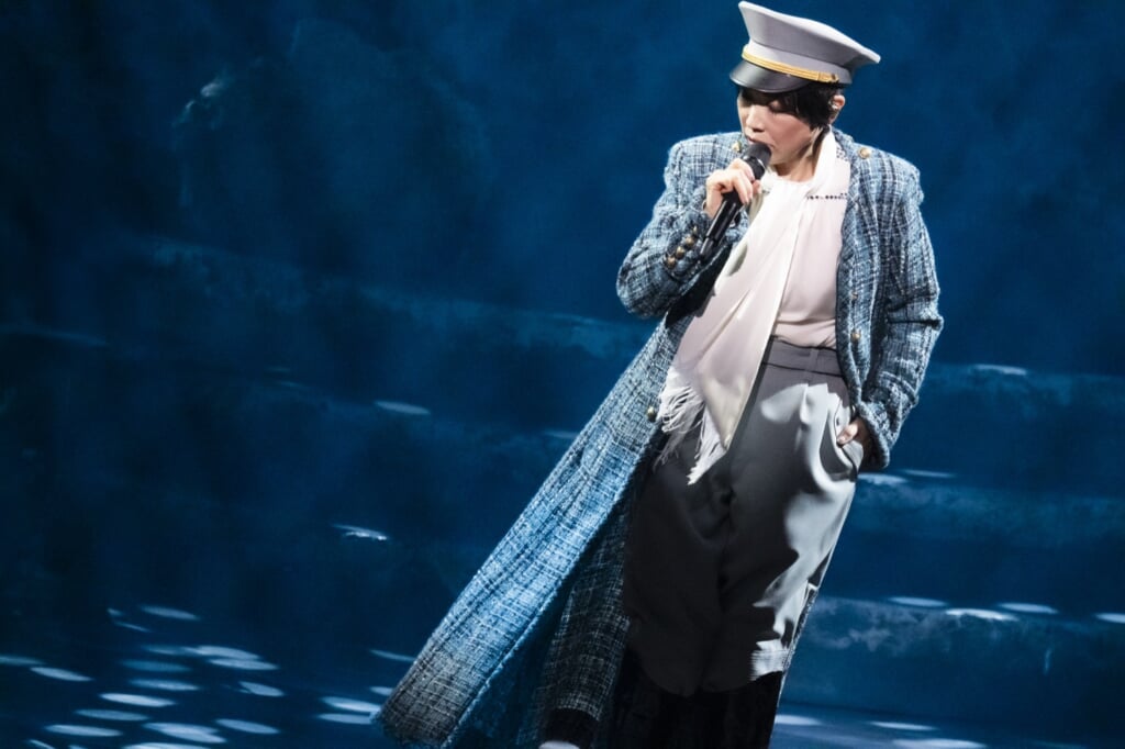 中盤のMCでは、今回のアルバム制作の核心が語られる。レコーディングには“第三の声=Yumi AraI”が参加していたものの、「残念ながら、ライブでそれを表現するには、今のテクノロジーでは間に合いません。だから今回はAIはなし」と、今回のコンサートツアーでは今の自分の声で歌うことを明かす。聞くところによれば、驚くべきことに、この制作過程でユーミンの音域は約1オクターブ半をカバーするまでに戻ったという。