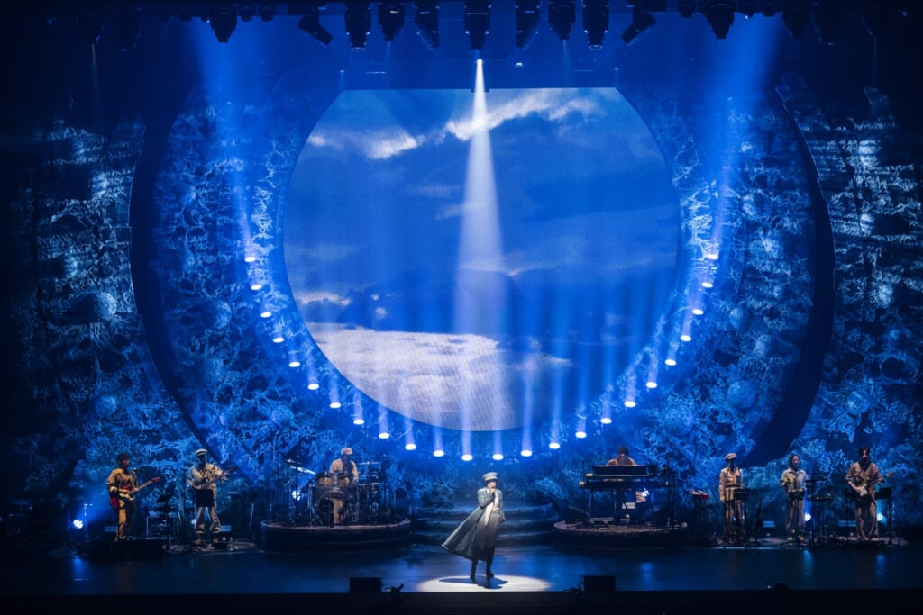 アルバムではサイケデリックな宇宙観に聴き手を引き込むオーバーチュアで始まり、ディストピアの先の希望を歌った曲で最後を締めるが、このステージで松任谷由実が選んだのは“今の自分の声で歌い切る”という明確な意思だった。自らがワームホールとなったその姿は、むしろ未来に向かう光を象徴しているように見えた。