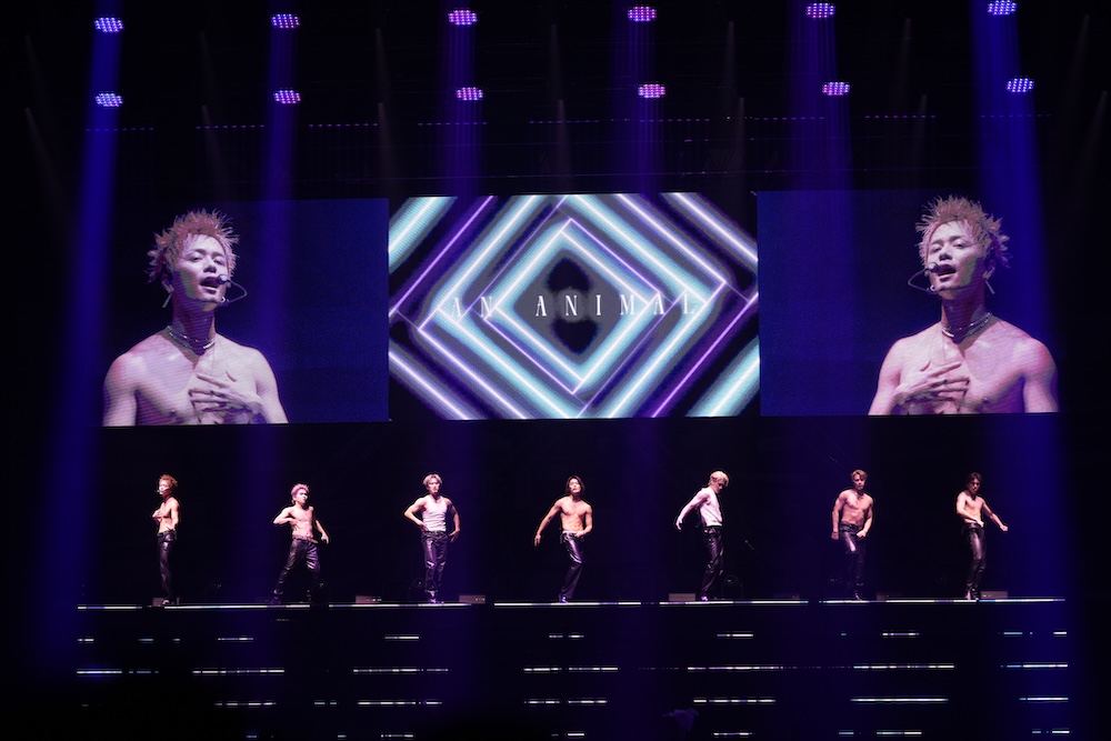 バンドのインタールードの後は、松井がバックステージで着替え、ステージに出ていくまでを映像で見せるというセクシーな演出が。ステージ上でメンバーと合流すると、「All of You」へ。定番となったサビの“腹筋見せダンス”も披露していった。雰囲気そのままに、大人の魅力たっぷりの「Animal」と続き、流線が美しいセクシーなダンスでさらに観客を沸かせていた。