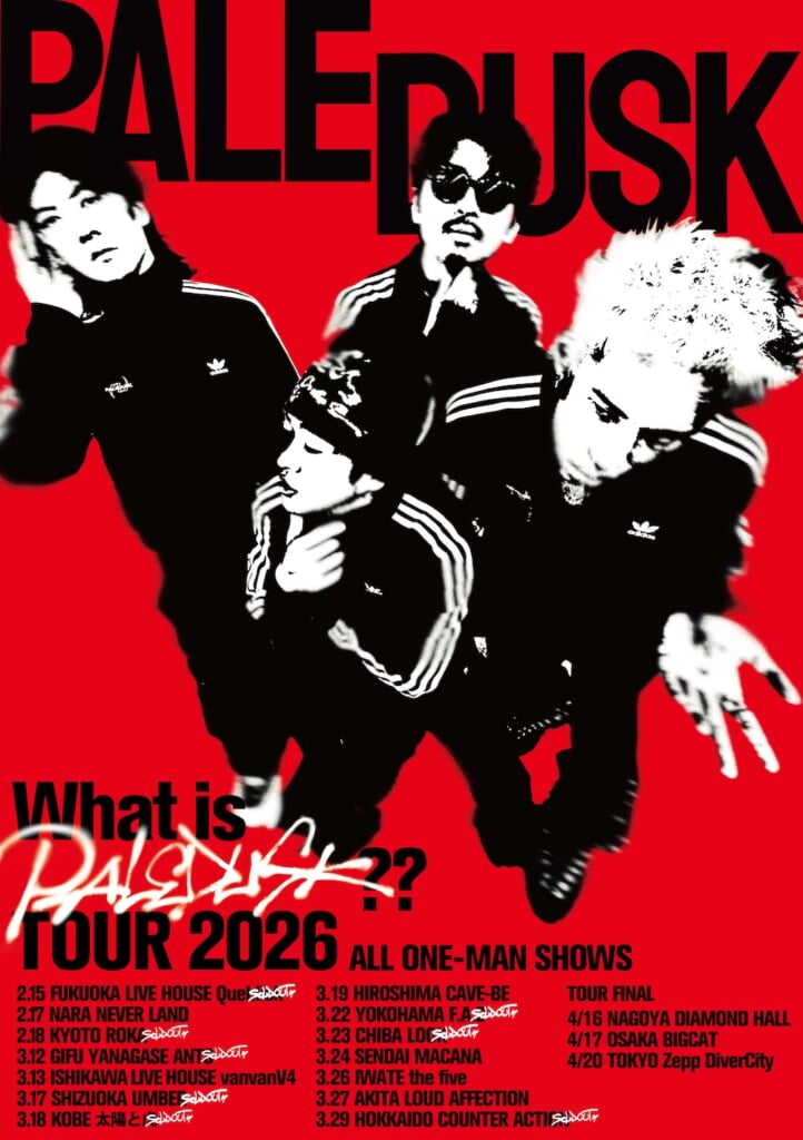 また、アルバムのリリースを記念した、バンド史上初となる全国ワンマンツアー<What is Paledusk?? TOUR 2026>のファイナルシリーズとなる東京、大阪、名古屋の追加公演も発表された。チケット先行受付は、ファンクラブ「PALE GARDEN」とアルバム「PALEDUSK」 封入シリアルコードにて、11月26日18時より開始。