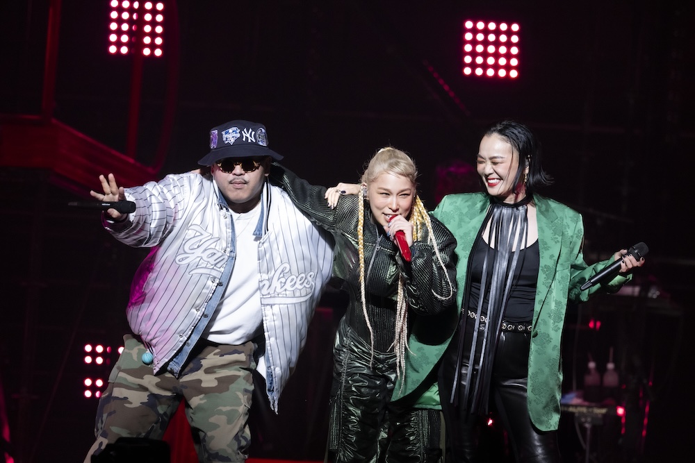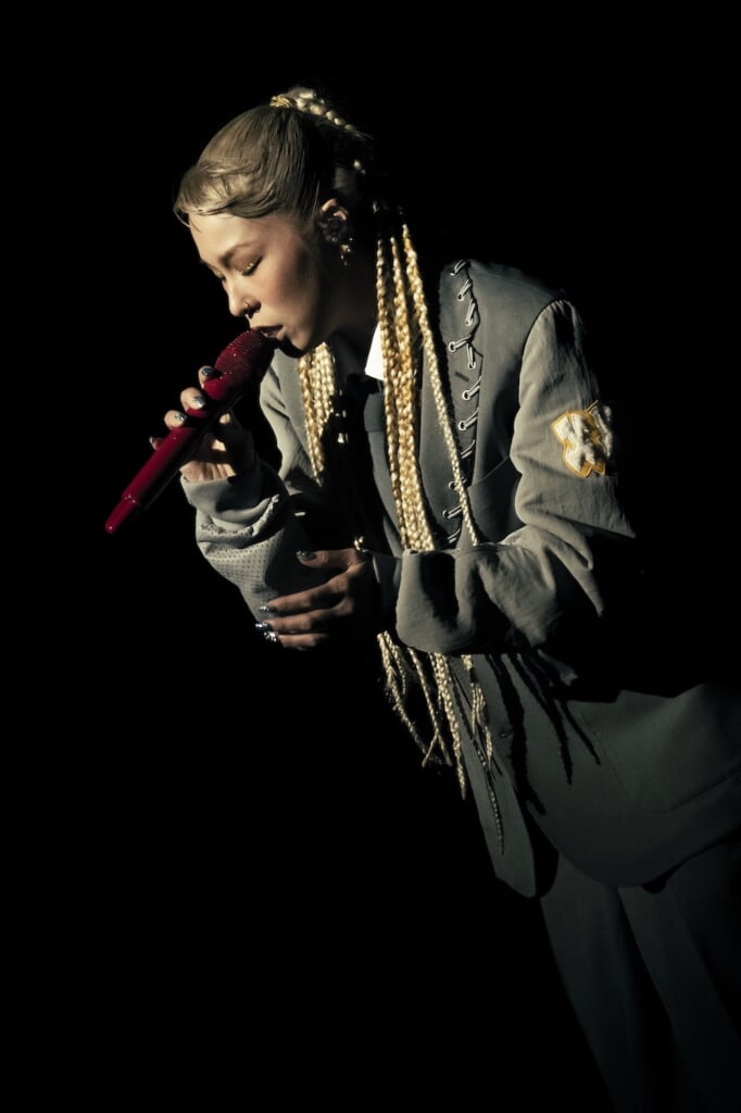 会場中で「My Friend」の合唱が沸き起こるなか、AIとバンドメンバーが再びステージへ。「ヤバい曲やるよ!」と始まったアンコール1曲目の「RISE TOGETHER feat. OZworld」では、OZworldが登場。鋭く、強烈なラップを繰り出すと、AIが思わず「カッコ良すぎる!」と叫ぶ。もちろん観客のテンションも最高潮。去り際にAIに向けて放った「自分のなかでAIは、このAIの時代のなかで、ChatGPTよりも最高のAIだ」というパンチラインも流石の一言だ。
