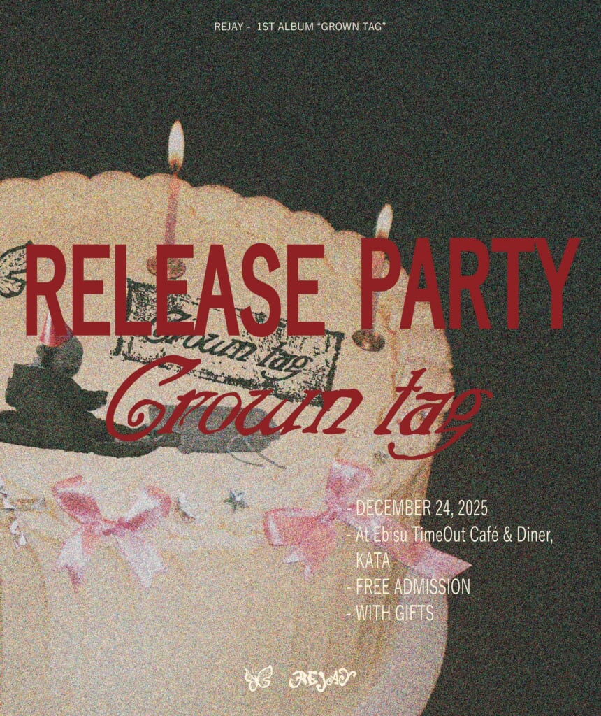 12月24日には1stアルバム発売を記念したリリースパーティーが開催される。アルバム収録の全10曲をライブで披露予定で、恵比寿・TimeOut Cafè&Diner, KATAにて入場無料のイベントとして行われる予定だ。来場者向けのプレゼントも用意されており、REJAYの音楽を間近で体感できる貴重な機会となる。