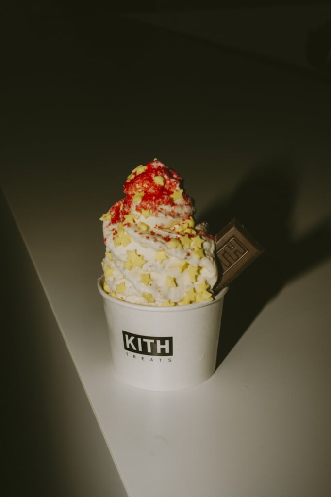 また、ニューヨーク発の「キス(Kith)」が手掛けるシリアルアイスクリームバー「キス トリーツ(Kith Treats)」が、楽曲内にあるワード「毒入りケーキ」をテーマにした、ポップで遊び心のある当日限定のオリジナルメニューを開発。ベースはシグネチャーのバニラアイスクリームに、レモンシロップとレモングミを混ぜ込み、底のブラックベリージャムとスポンジケーキで“毒入りケーキ”のイメージを表現。星型シュガーと、赤のサンディングシュガーで曲の世界観を再現した。パチパチキャンディの楽しい仕掛けなど、食べると味と触感の変化を楽しめる遊び心のあるメニューで来場者を歓迎した。