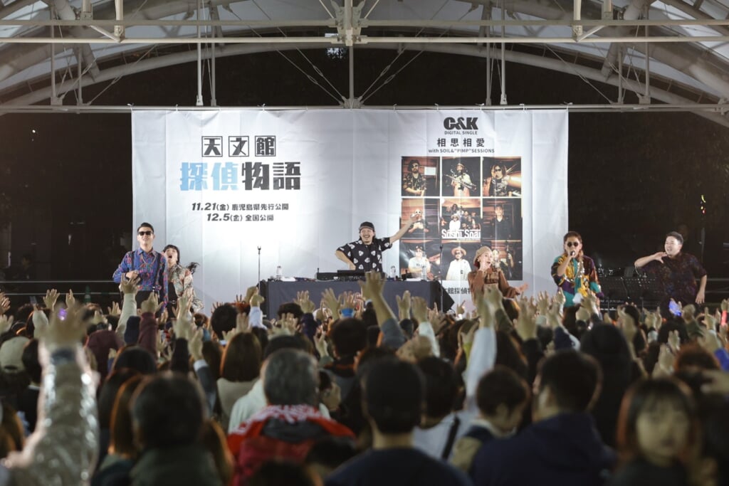 C&Kが、主題歌を務める映画『天文館探偵物語』 の鹿児島先行公開を記念して11月27日(木)に鹿児島・天文館公園でフリーライブを開催。主題歌「相思相愛 with SOIL&”PIMP″SESSIONS」を含む全8曲を披露し、会場に集まった約4,000人を圧巻のパフォーマンスで盛り上げた。